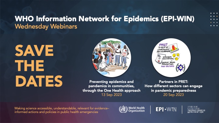 Participate in EPI-WIN's comprehensive webinar series this September. Over the span of a month, we will be presenting in-depth knowledge from leading specialists on pressing public health topics, including the One Health initiative and the PRET initiative. These sessions will also feature interactive Q&A segments, offering attendees the opportunity to delve deeper into the subject matter. Engage with a community of like-minded professionals and garner critical insights from esteemed experts that will enhance your decision-making capabilities. We highly value your participation and look forward to welcoming you.
